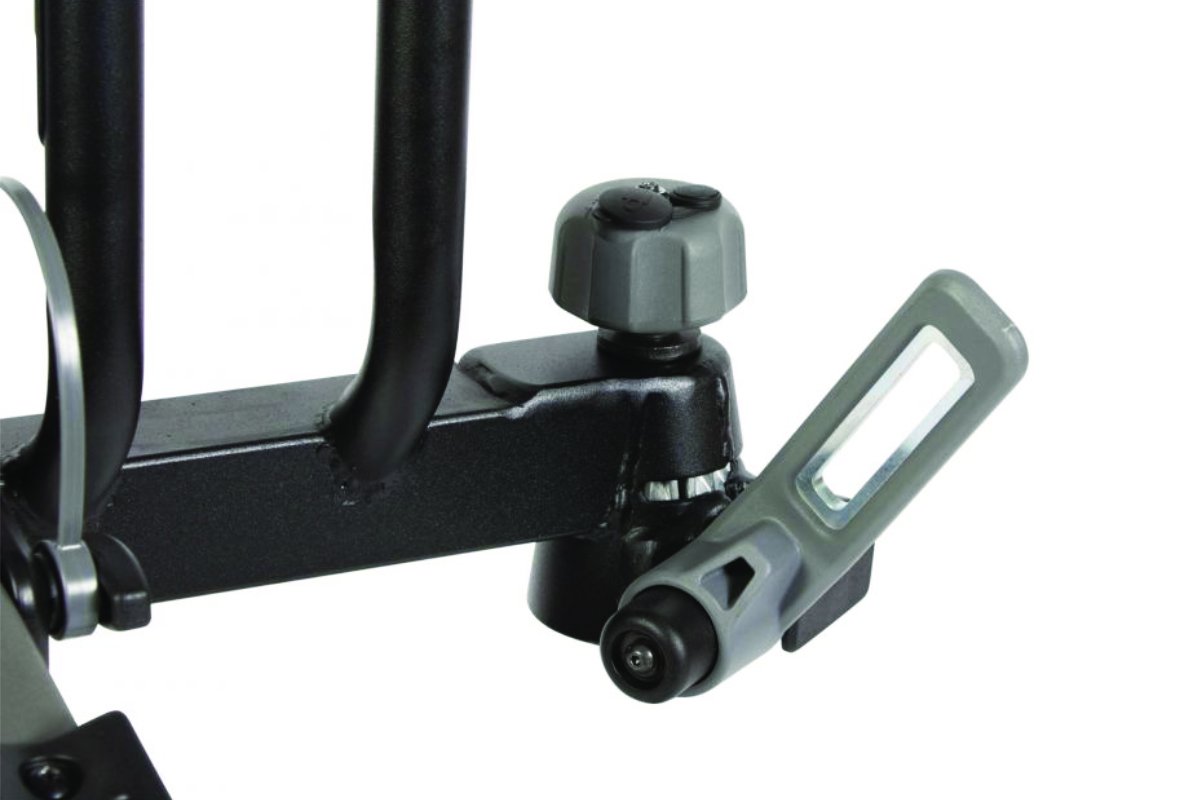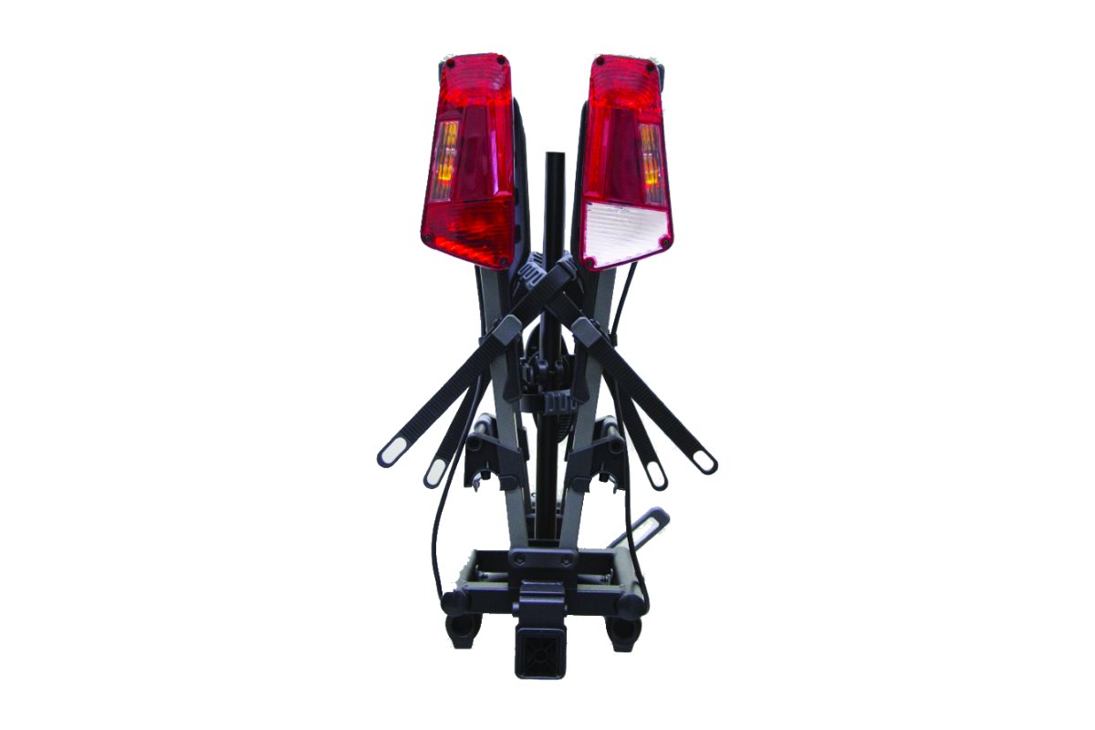 2 kerékpár szállítására készült. Teljes világítórámpával és 13 tűs csatlakozóval van felszerelve. Bármilyen vonóhorogra felszerelhető szerszám használata nélkül. Legfeljebb 40 kg teherbírást biztosít. Egy kerékpár maximális tömege 20 kg. Ha éppen nem használja a tartót, összecsukható kompakt méretre. A tartó a vonóhorgon lezárással biztosítható.