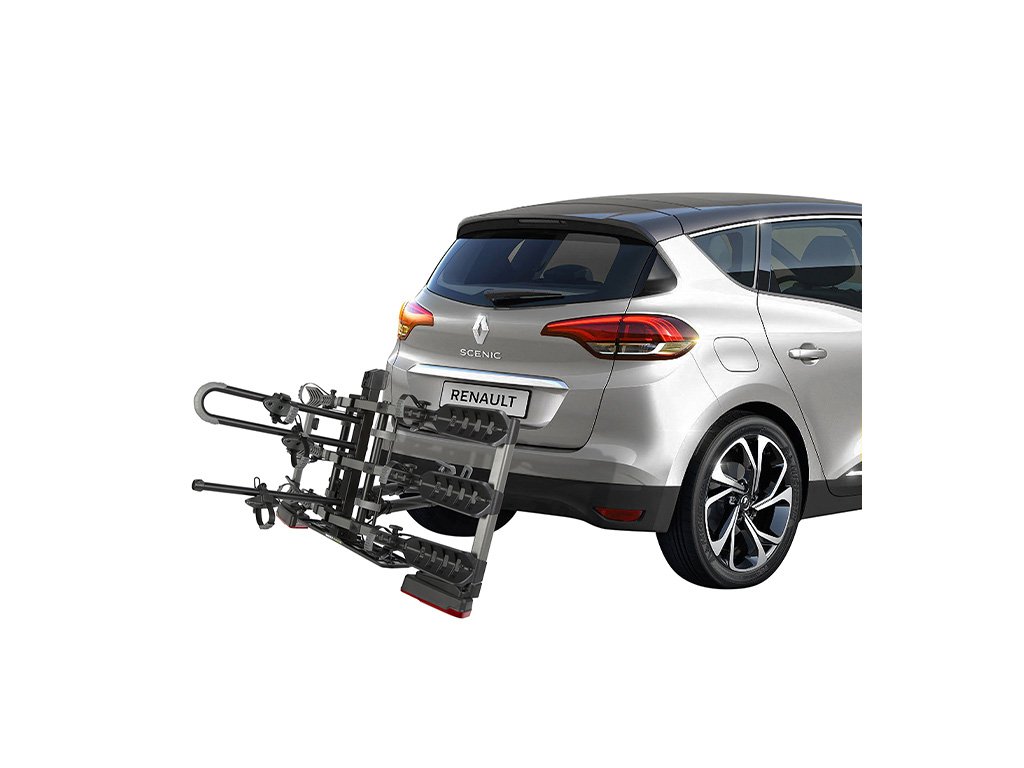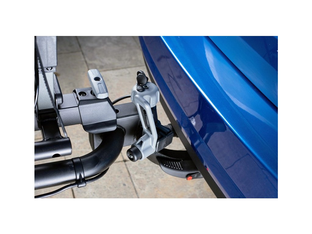 A tartó még felszerelt kerékpárok esetén is tökéletesen kiegyensúlyozott, és lehajtott állapotban kellően széles hozzáférést biztosít az autó csomagtartójához.