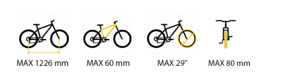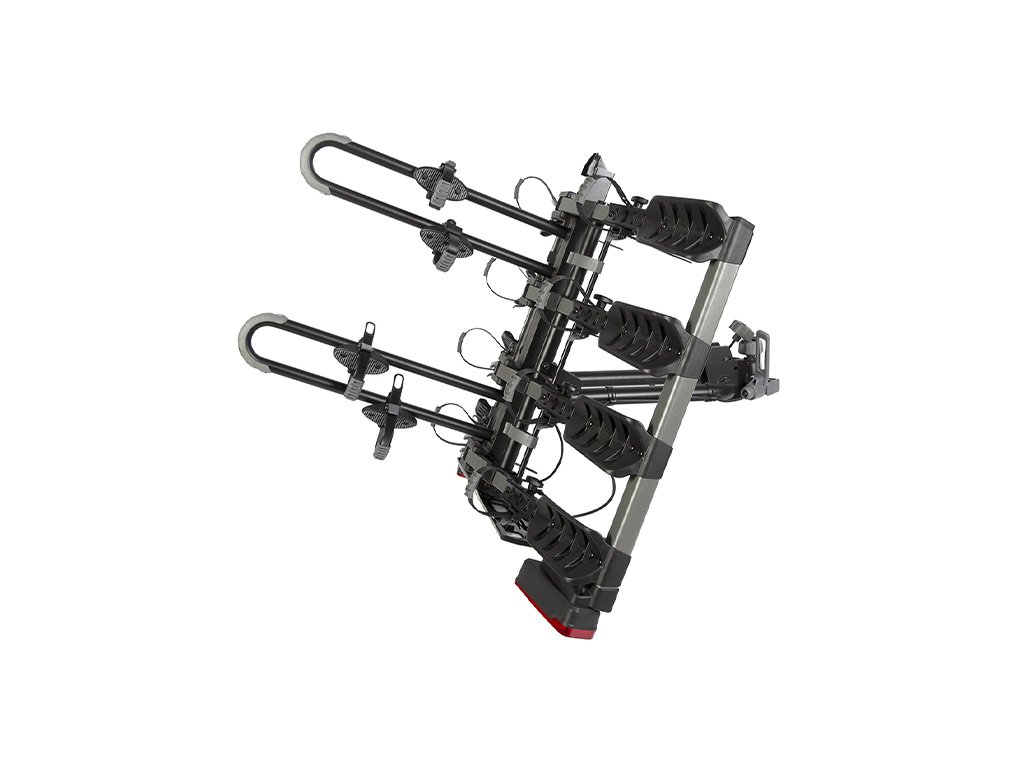 A szállító tökéletesen kiegyensúlyozott, és összecsukva megfelelő hozzáférést biztosít az autó csomagtartójához. A csomag tartalmaz egy zárható kötelet is a kerékpárok lopás elleni védelmére.