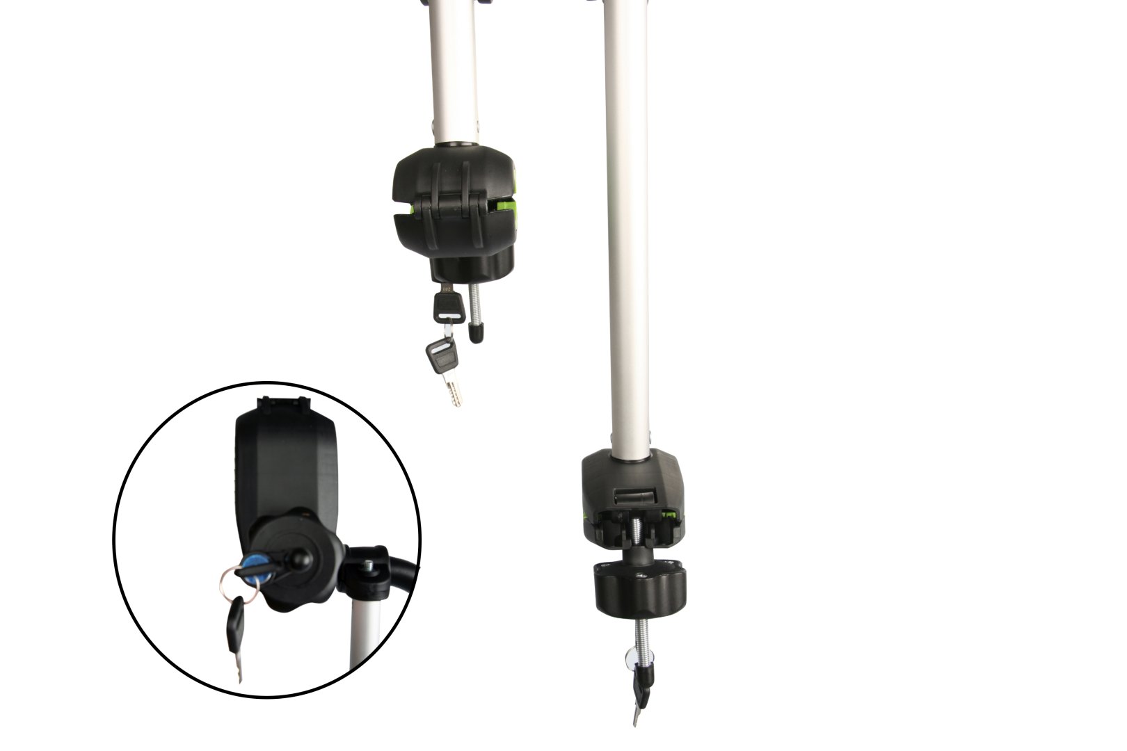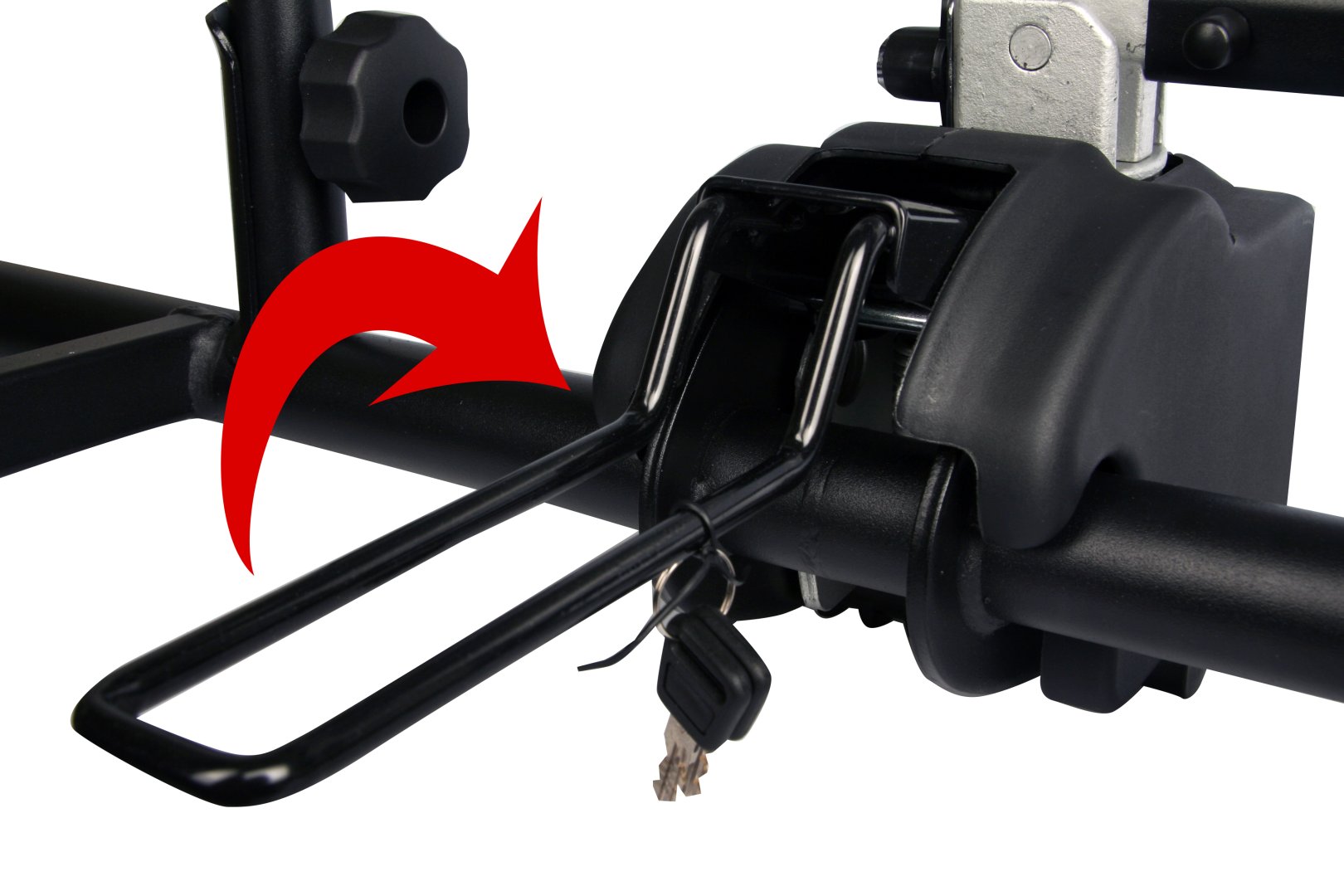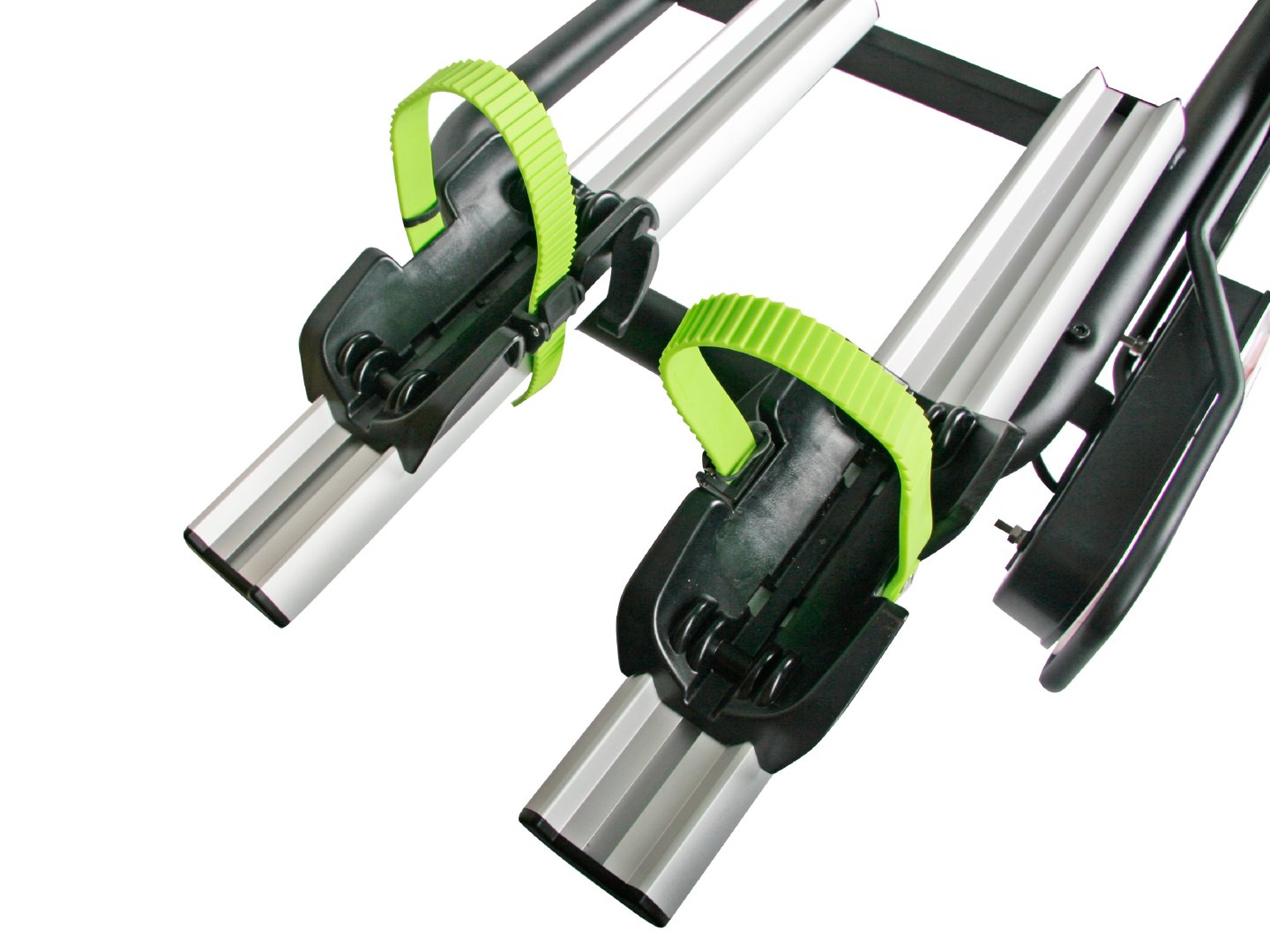 Megbízható és tartós kerékpárszállító akár 2 elektromos kerékpár szállítására 60 kg össztömegig. Erős acél, alumínium és műanyag kombinációja biztosítja a stabilitást. Gyorsrögzítő kar segítségével szerszám nélkül felszerelhető.