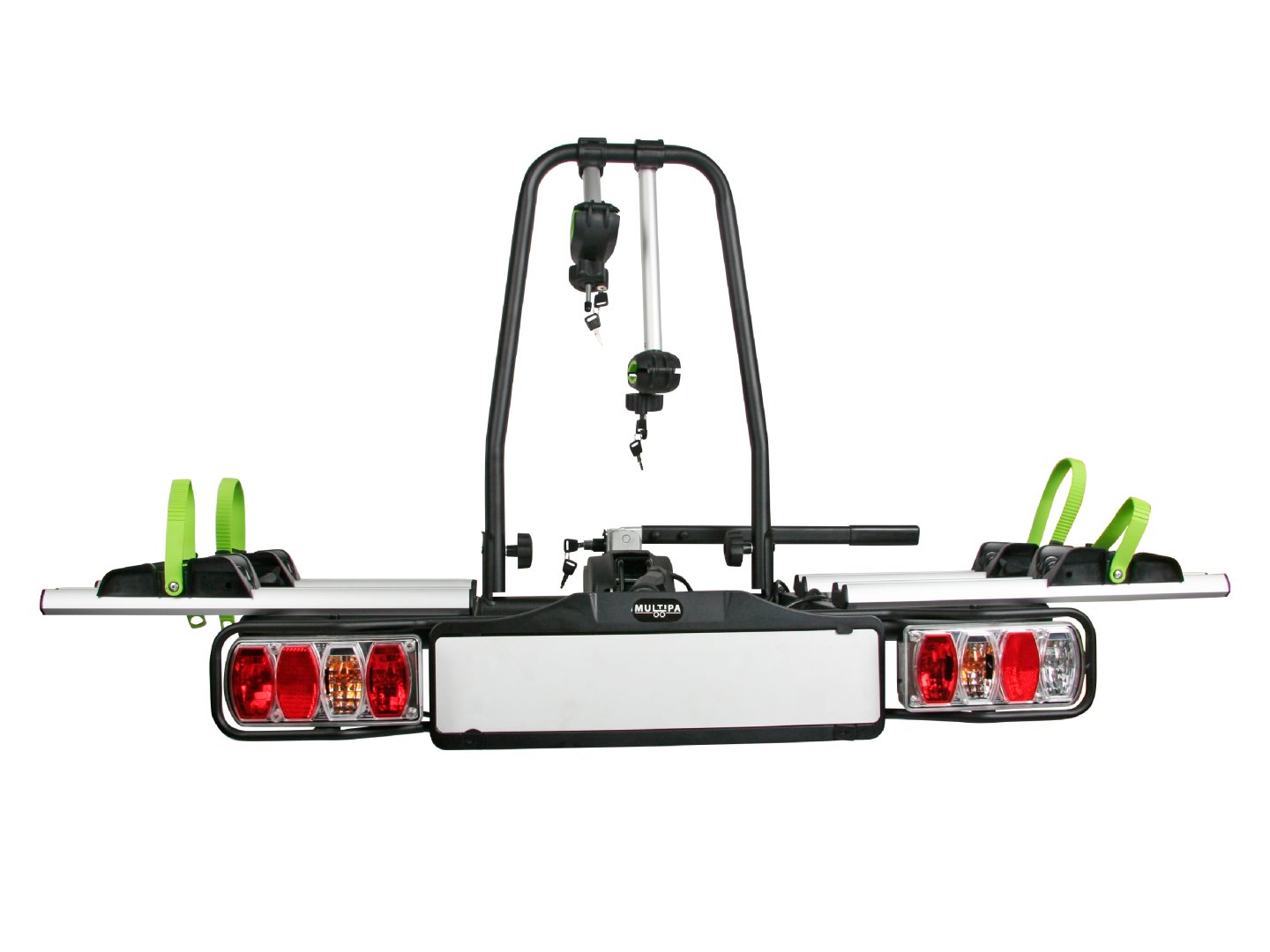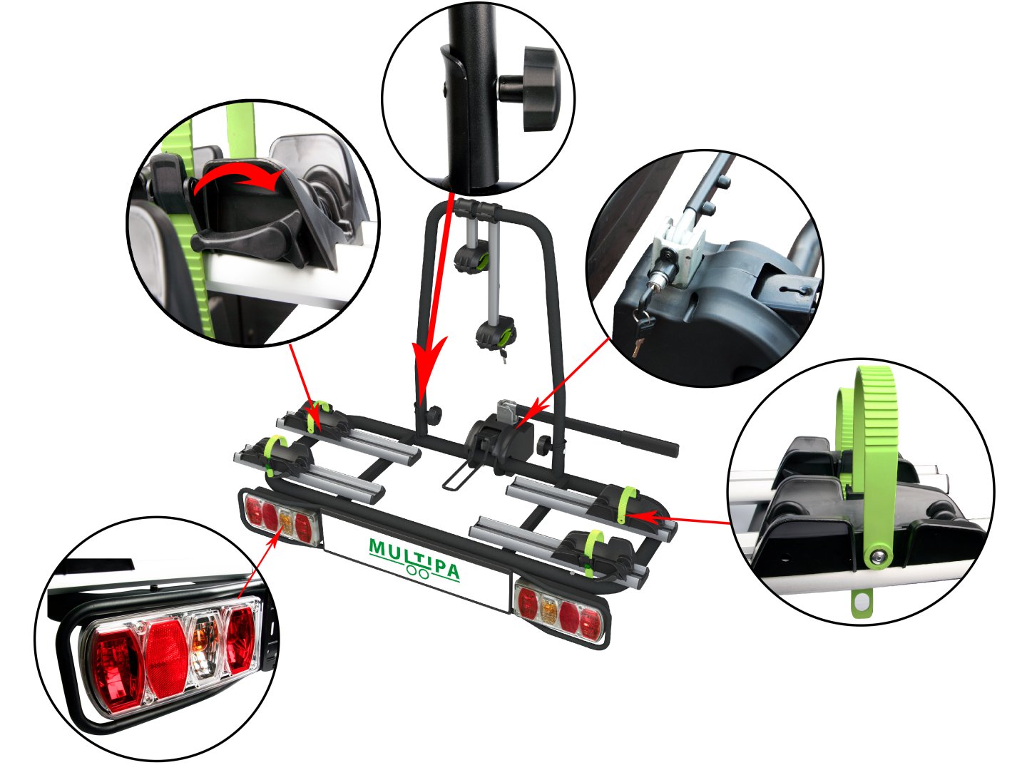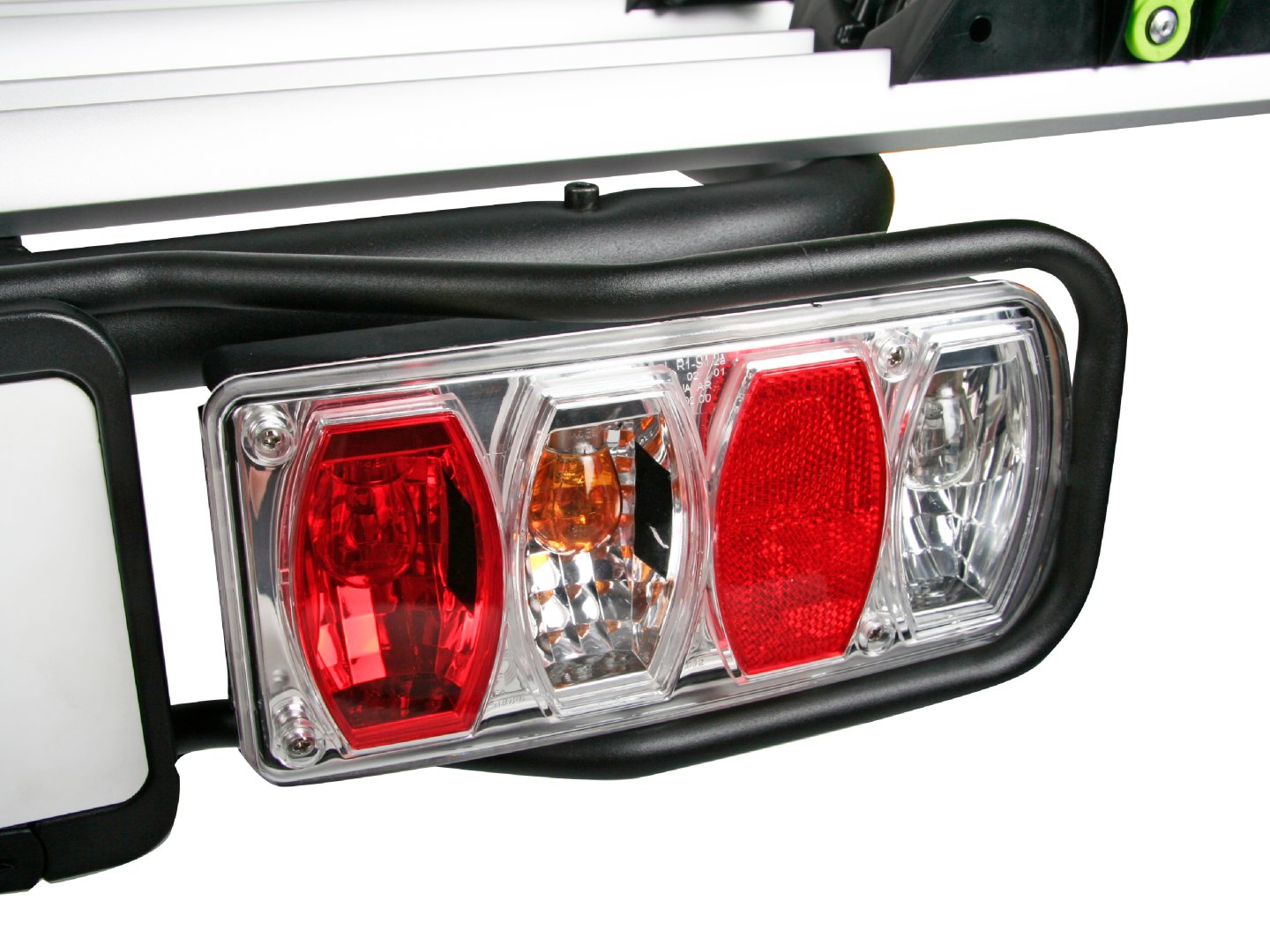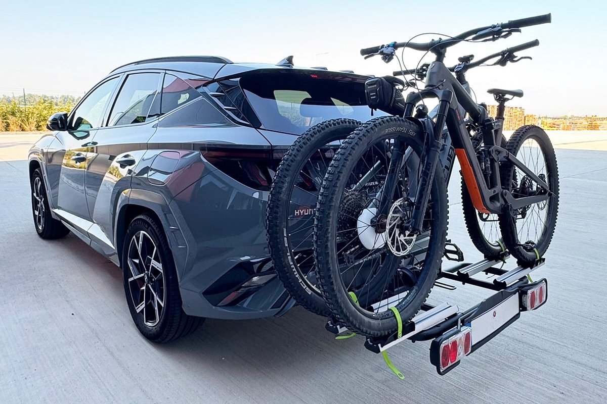 A dönthető kialakítás lehetővé teszi a csomagtartó elérését a kerékpárok eltávolítása nélkül. A tartó 13 pólusú csatlakozóval, világító panellel és a harmadik rendszámtábla tartójával van felszerelve, és megfelel minden közúti közlekedési előírásnak.