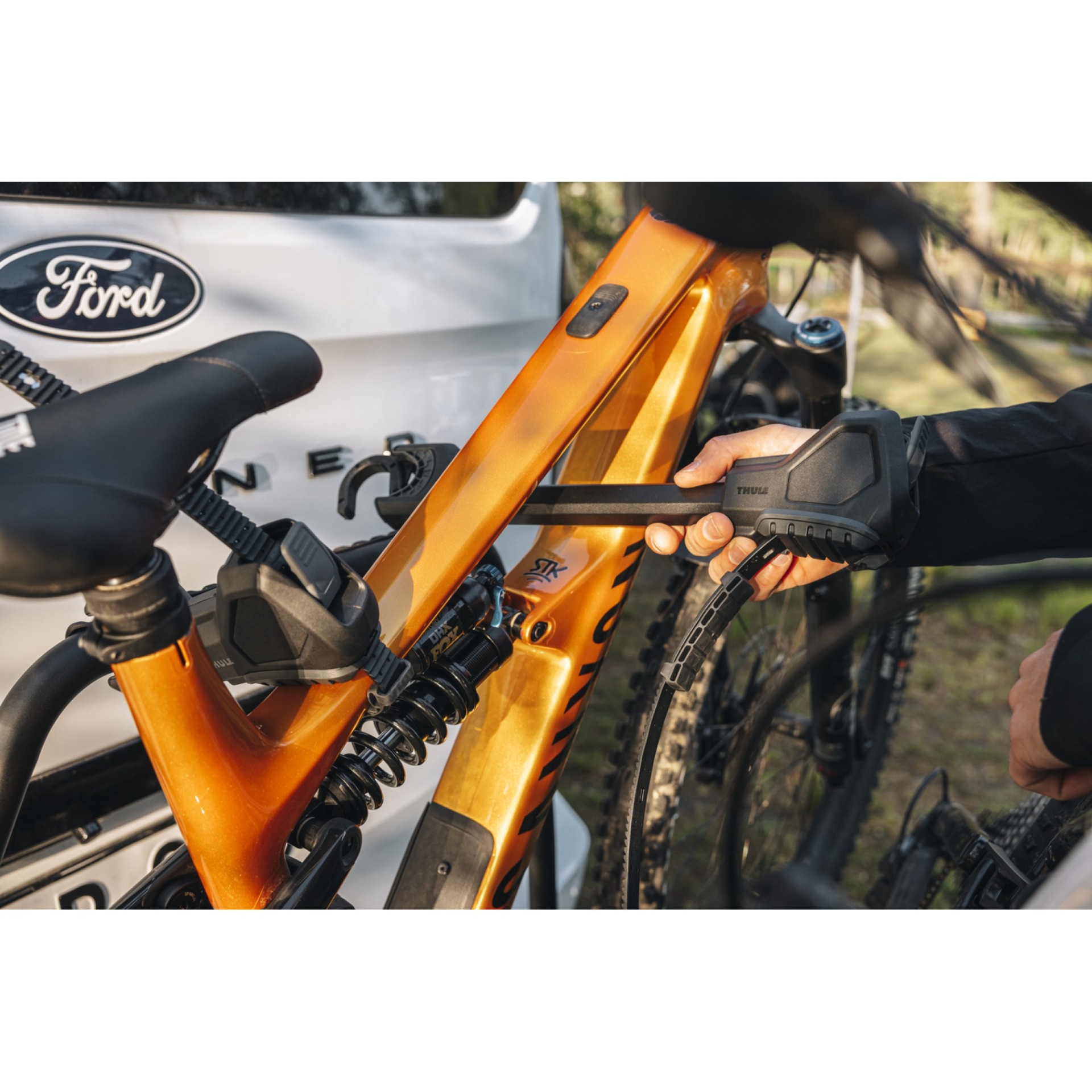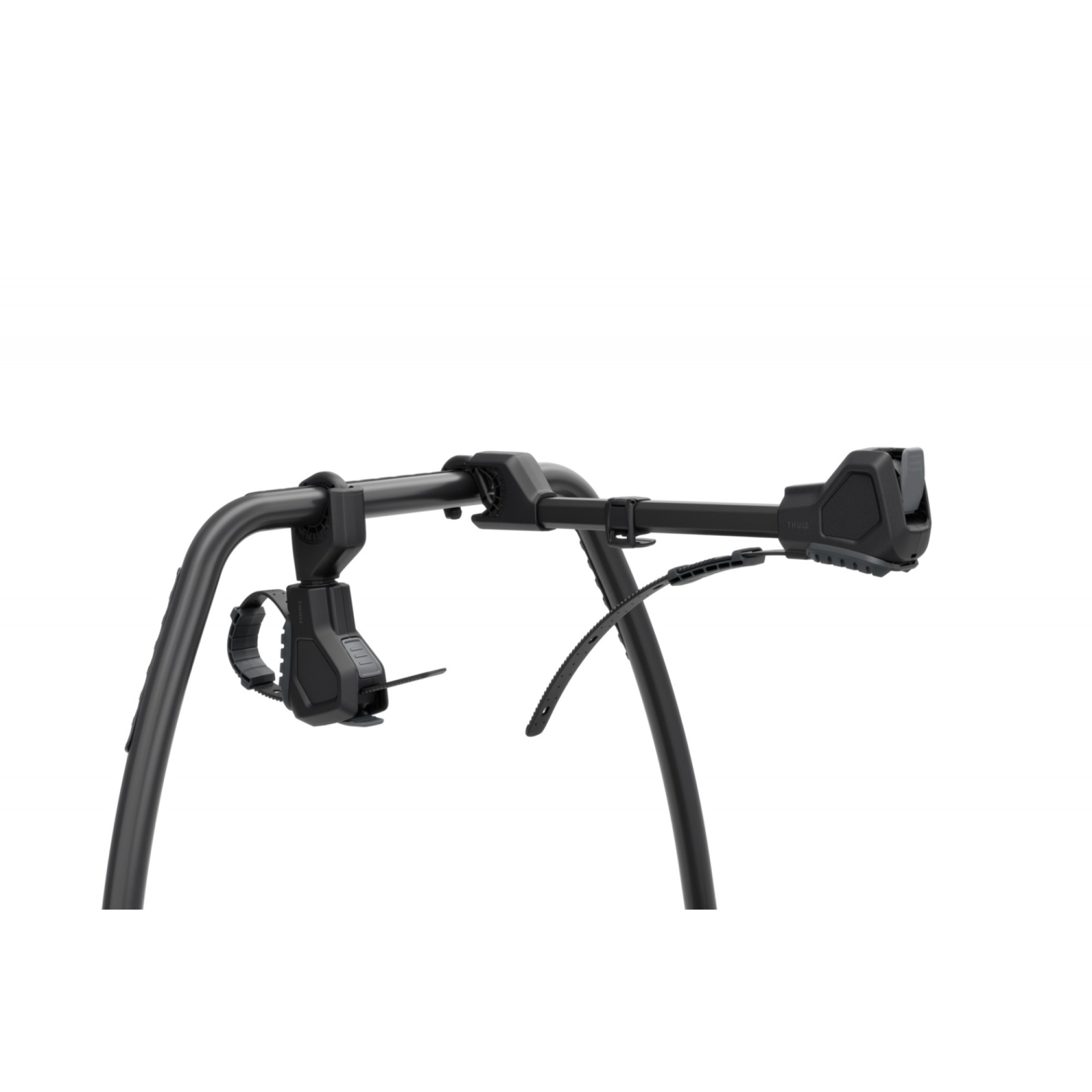A kerékpártartó karrendszer független karokkal, forgófejjel és hevederes rögzítéssel rendelkezik, így biztonságos illeszkedést biztosít a vázméretek és geometriák széles skálájához, beleértve a karbon vázakat is.