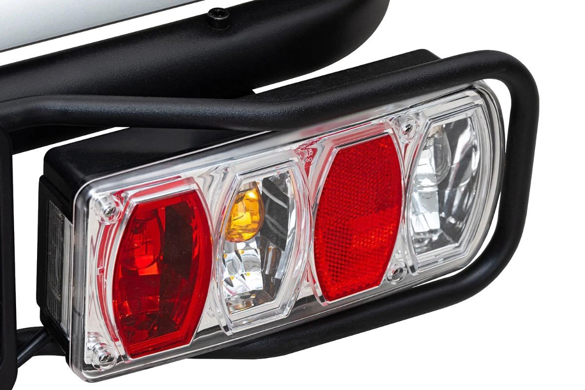 A tartó 13 pólusú csatlakozóaljzattal van felszerelve a világítás teljes értékű csatlakoztatásához. A zárható rendszer növeli a szállított kerékpárok és magának a tartónak a biztonságát.